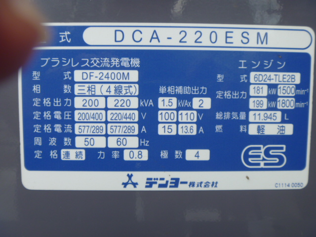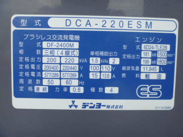 2) Denyo DCA220ESM#3846303 2011yr 4458hr